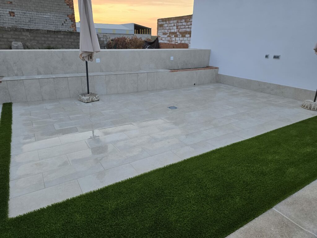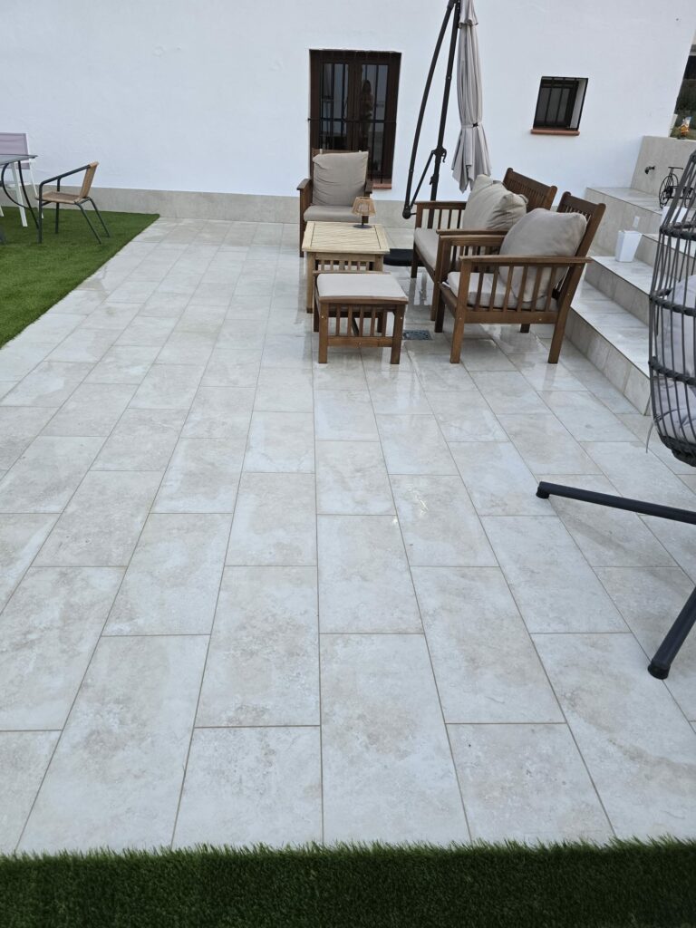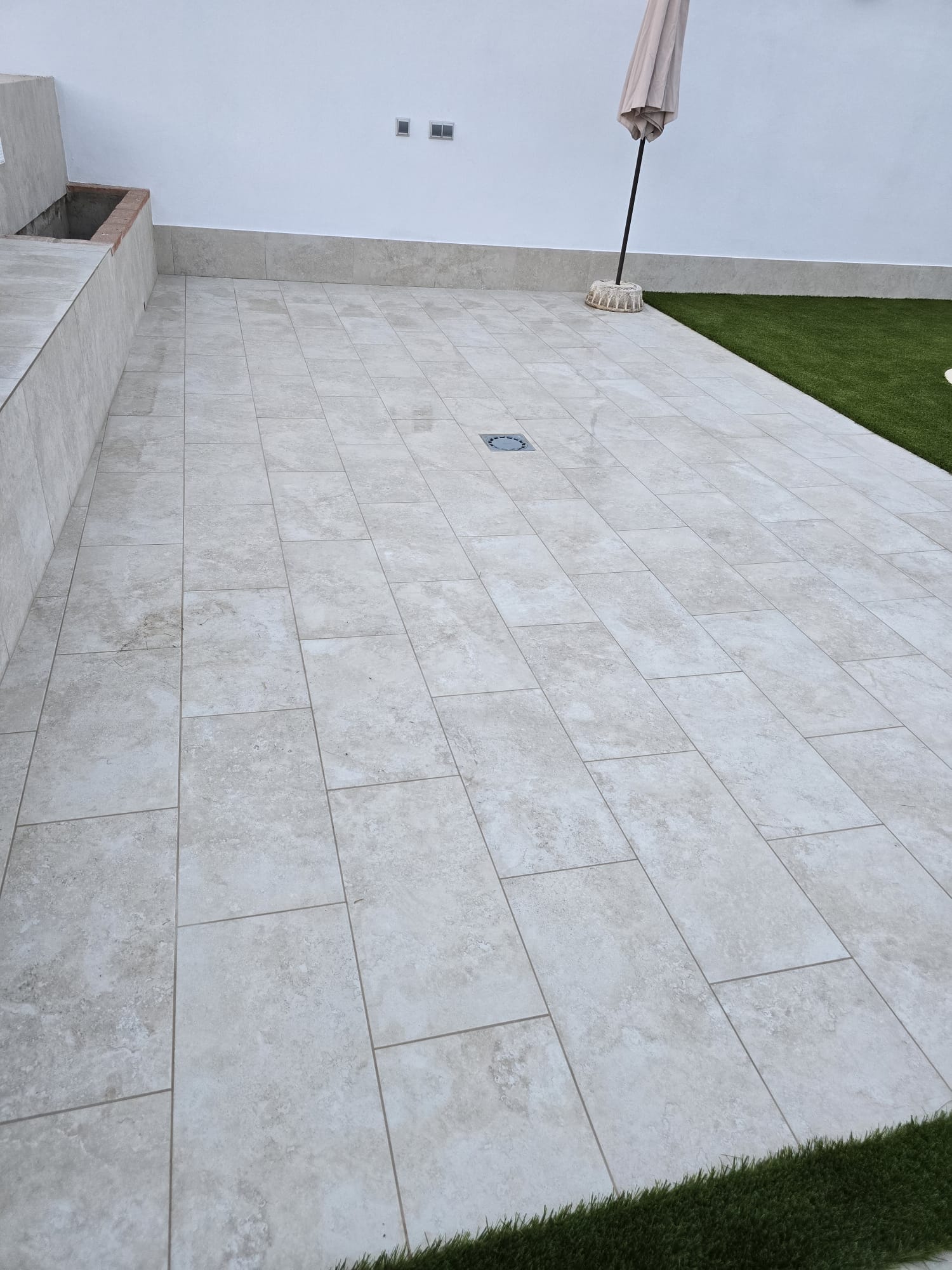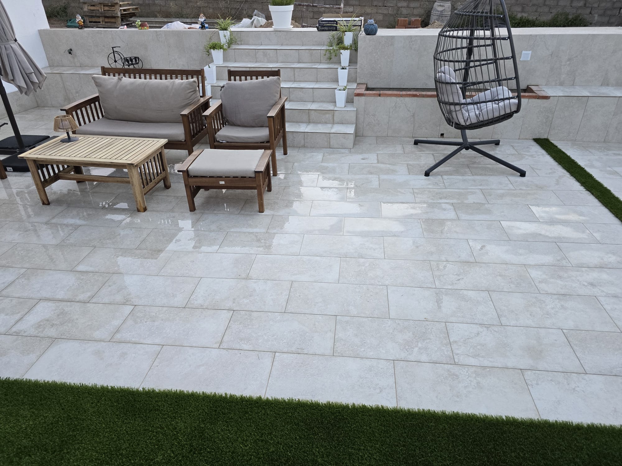 Recientemente, uno de nuestros clientes transformó la terraza de su vivienda con nuestro azulejo porcelánico imitación mármol rapolano Fontana Pearl 30×60, y el resultado fue impresionante. La idea era conseguir un espacio elegante, luminoso y seguro, donde poder disfrutar al aire libre con la familia y amigos. Las fotos del proyecto estarán disponibles en nuestra web para que otros clientes puedan ver cómo queda instalado este material y se inspiren para sus propias terrazas.